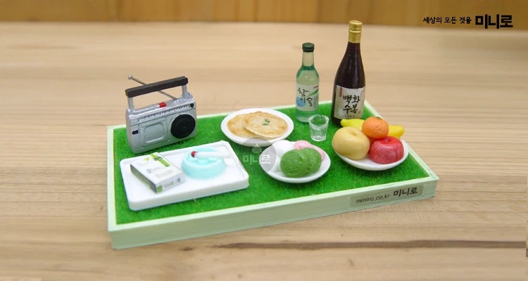 So I stumbled upon these tiny liquor sets that bring back some wild memories from the college days of, you know, sharing shots with friends after exams. This miniature Chamisul Fresh set is basically my best friend in dollhouse décor—tiny soju and glasses! They fit perfectly into my display cabinet like they’re just waiting to be invited to a party! It’s kinda funny how something this small captures the essence of fun nights out… it makes me wanna have get-togethers all over again, even if it’s just for little toys!