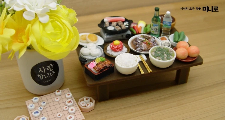 قبل إعداد وجبتك المصغرة، اختر حجم الطاولة أولاً، ثم حدد المجموعة الصحيحة من الأرز والشوربات لإنشاء مشهد طعام كوري واقعي.