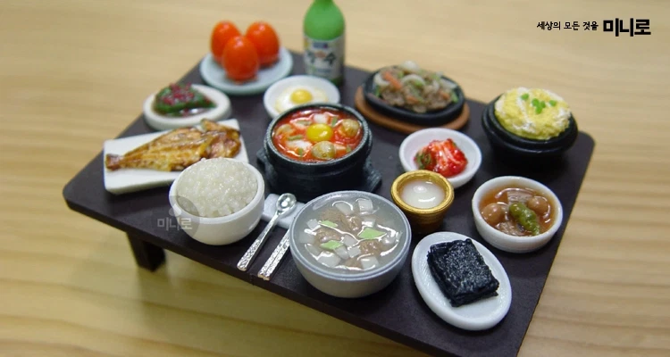 مجموعة أرز وحساء كورية مصغرة – نماذج وجبات تقليدية واقعية