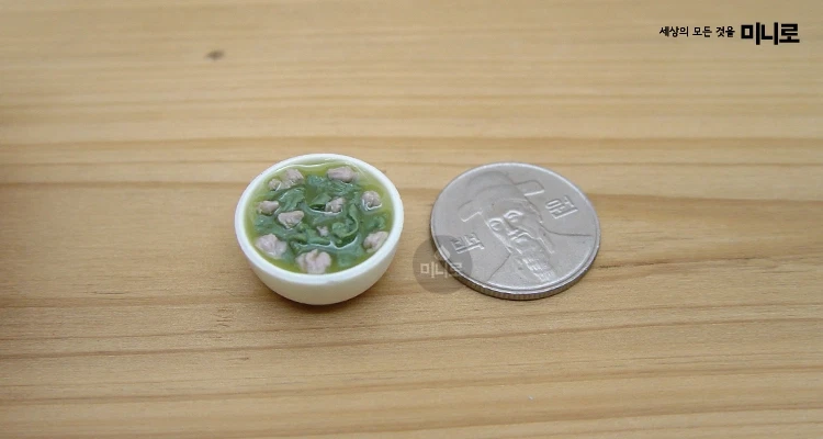 الوصف: احتفل بأعياد الميلاد الكورية التقليدية والوجبات اليومية مع هذا miyeok-guk المصغر، المصنوع من الأعشاب البحرية والمقدم في وعاء صغير وواقعي.