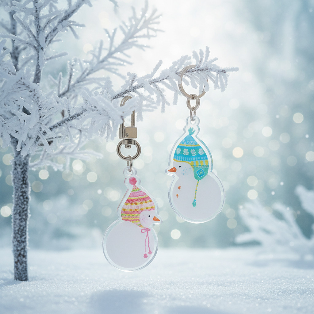 NEULBOM Snowman Couple Keyring Size: 3 × 5.7 cm (body, ring 제외) · Material: Double-sided laminated acrylic · Ring: Nickel · Options: Pink / Blue / Set(2) ★★★★☆ — Durable…