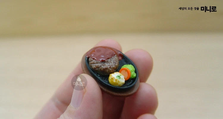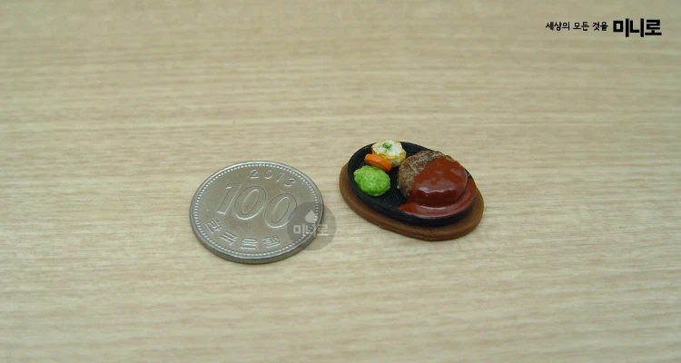 Beschreibung: Inspiriert von koreanischem Hamburger Steak, verfügt diese Miniatur über ein herzhaftes Patty-Design mit realistischen Oberflächenstrukturen und Farbtiefe.