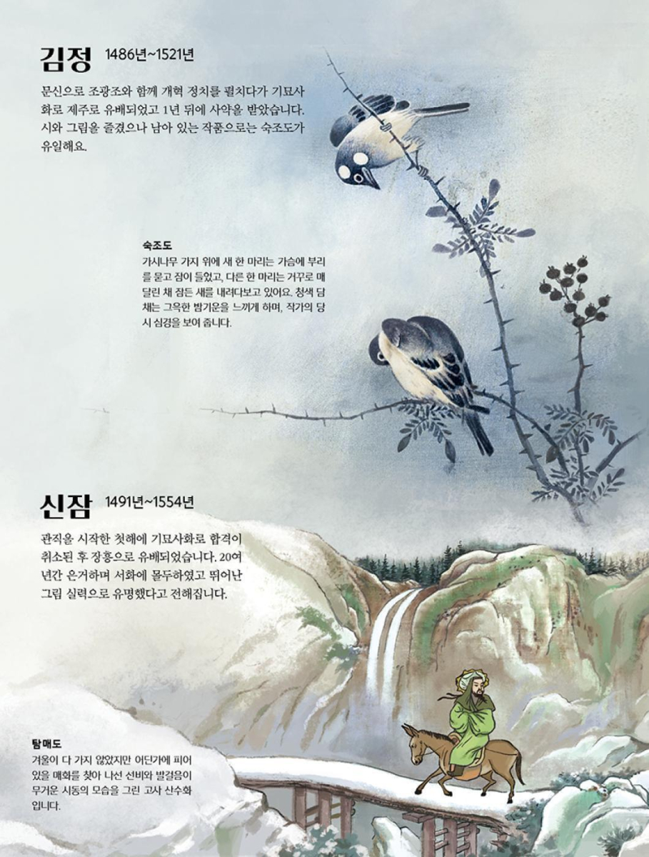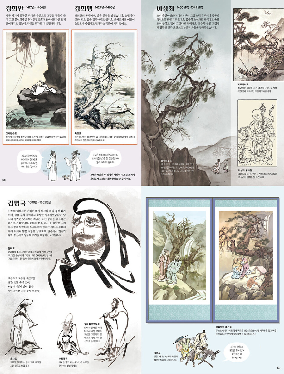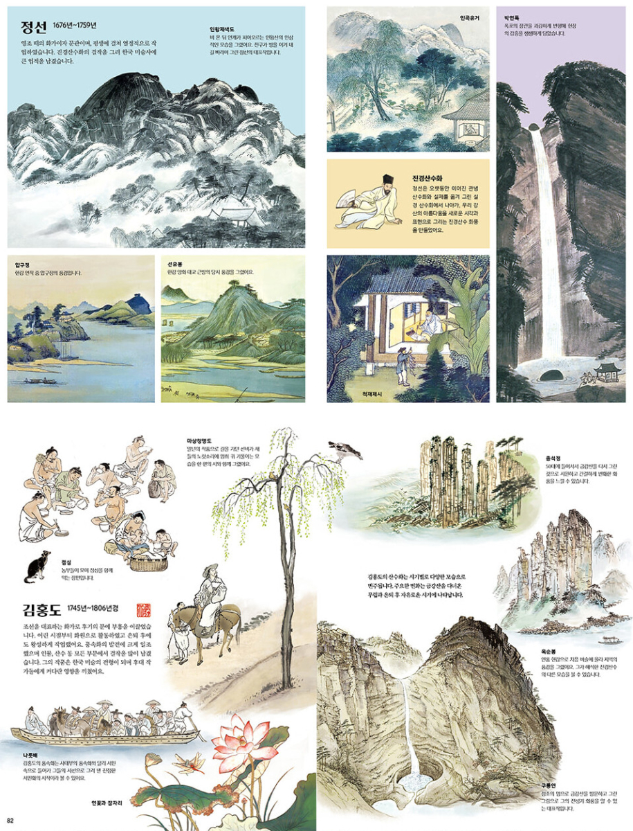 How much do you love Korean art? From beloved artists such as Kim Hong-do, Jeong Seon, An Gyeon, Shin Saimdang, Kim Myeong-guk, Kim Jeong-hui, Shin Yun-bok, Jang Seung-eop, to Lee Jung-seop — this book brings together their masterpieces, all reimagined in beautiful illustrations.