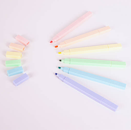 Tijdens het studeren in mijn huiselijke schrijfhoek kwam ik deze highlighters tegen. De kleuren brachten onmiddellijk vrolijkheid! Toen ik belangrijke passages markeerde, leken ze echt leven te krijgen op de pagina’s; alsof elk woord niet alleen aandacht kreeg, maar ook karakter en diepte toevoegde aan mijn aantekeningen.