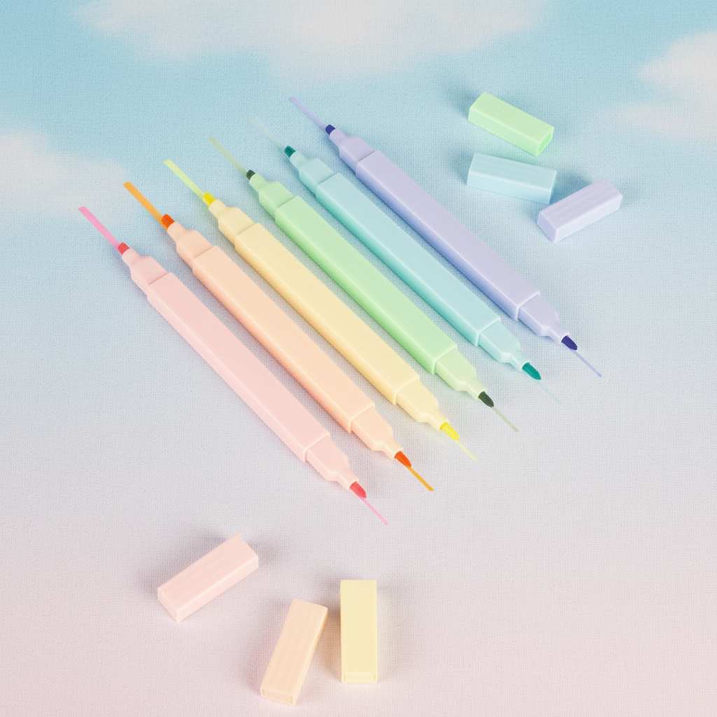 Rainbows symbolize hope, beauty, and comfort. This highlighter set reflects those emotions with gentle yet vivid colors, perfect for creating notes that stand out without being overwhelming.