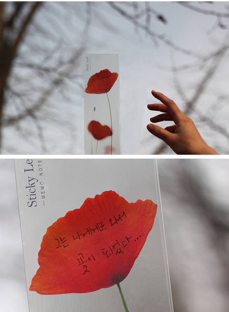 The Appree Stickyleaf Poppy Memopad is designed to resemble delicate poppy petals, offering a moment of warmth and beauty in the midst of your daily routine. More than just a sticky note, it doubles as a charming desk decoration that brightens your workspace.