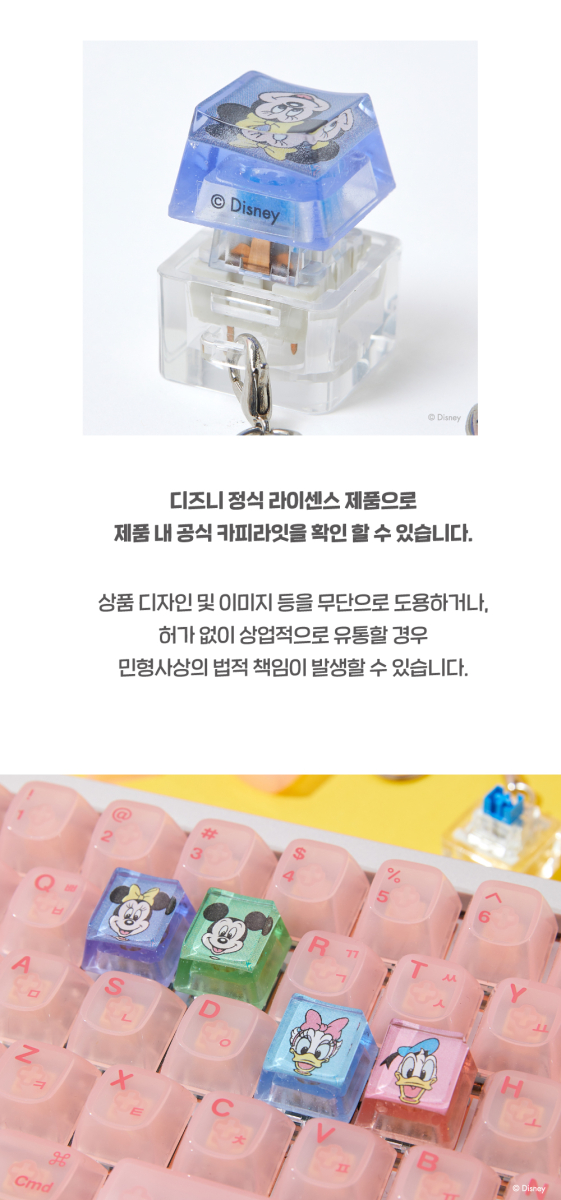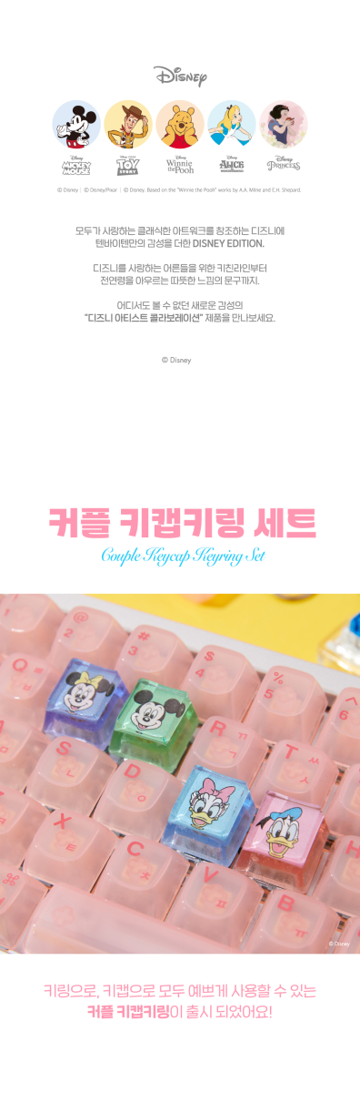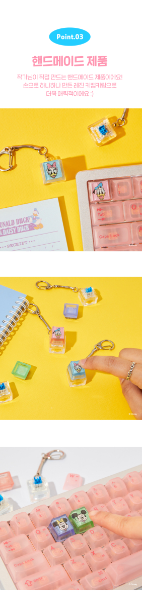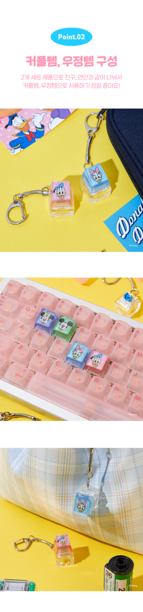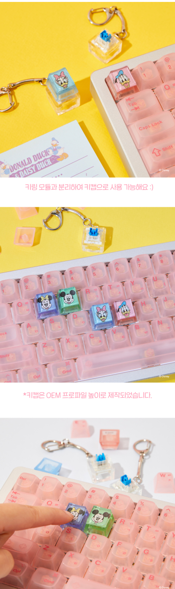 These keycaps are cute and fun. I love how they double as keyrings too. Good quality but took a little longer to arrive than expected. Worth it for Disney fans.