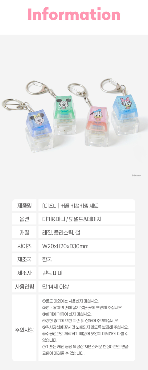 Add a touch of Disney magic to your daily life with the Disney Couple Keycap Keyring Set — a charming way to personalize your style and share a little happiness with someone special.