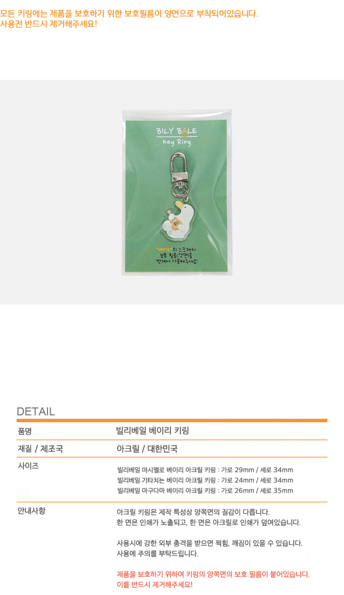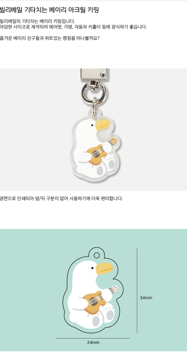 Introducing the BILY BALE Guitar-playing Baily Keyring, a charming accessory that brings a touch of whimsy to your everyday essentials! Perfectly sized for your AirPods, bags, or car key holders, this double-sided keyring showcases adorable Baily in action, making it a delightful companion for any adventure. With its compact design and protective film, this keyring is ready to brighten your day—just peel off the film and let the fun begin!