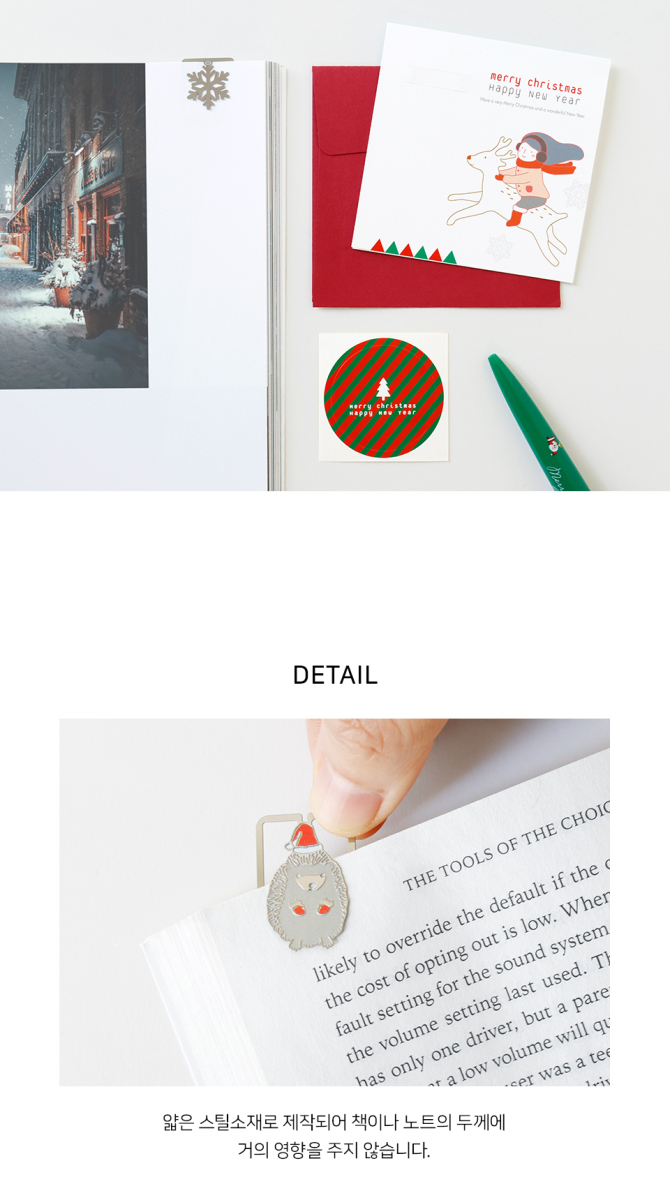 Celebrate the holiday season with the Christmas Bookmark, a festive and practical accessory that makes reading even more delightful. Crafted from thin steel, this bookmark slides easily into books or notebooks without adding bulk, making it both functional and decorative.