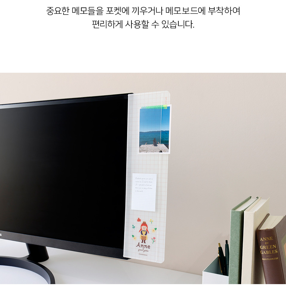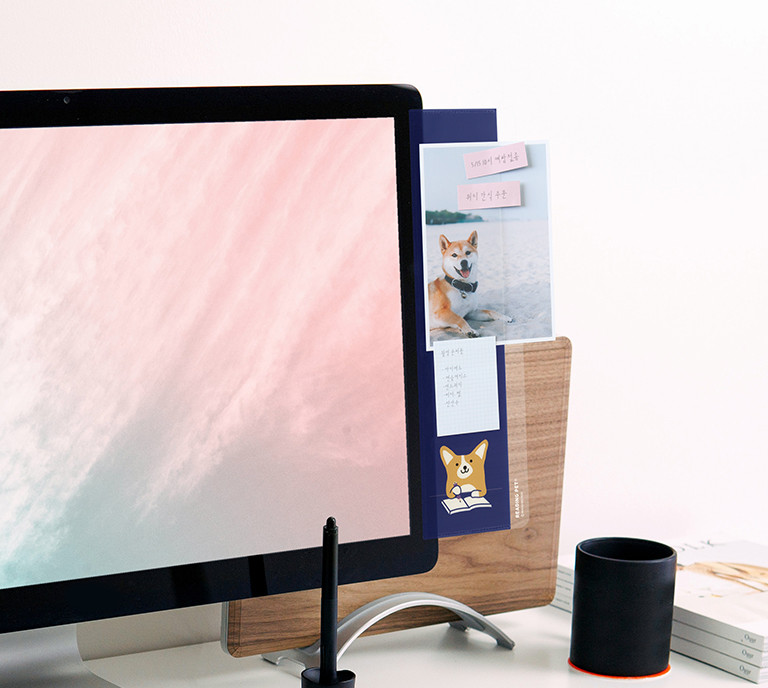 A pocket memo board that can be easily attached to your monitor.