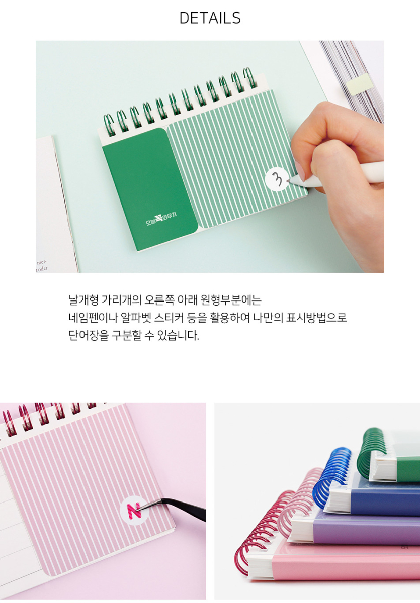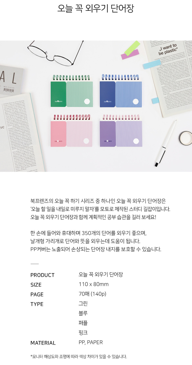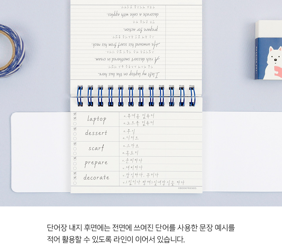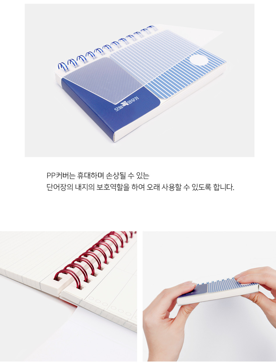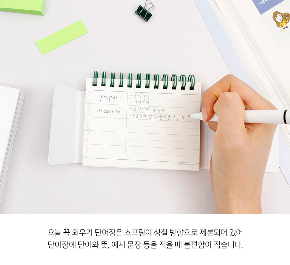The Must-Memorize Word Book is top-bound with a spring coil, making it easy to write words, meanings, and example sentences without discomfort.