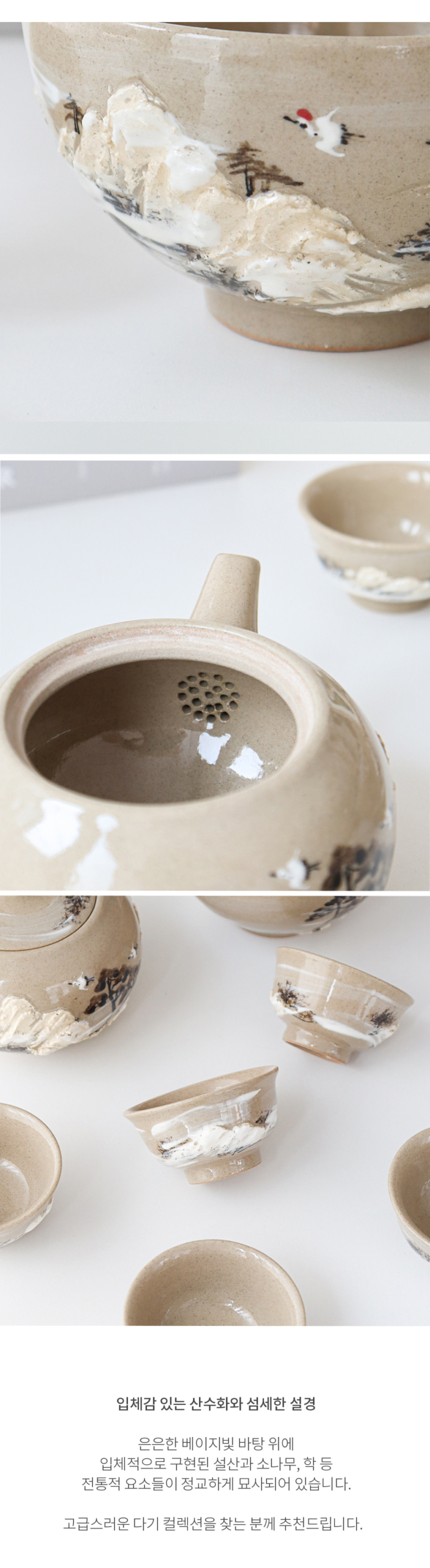 In my search for the ideal tea set that complements a rustic vibe, I stumbled upon Master Kwon’s exquisite Buncheong Oxidation Tea Set. This handcrafted masterpiece echoes timeless elegance with its tranquil design of a snow-covered landscape showcasing humble cottages against serene pines and towering mountains. The warmth emanating from the oxidation-fired ceramic feels welcoming on chilly evenings in Chicago, while serving as an engaging centerpiece during gatherings. It undoubtedly stands apart when compared to standard porcelain options available today — there’s simply nothing like this enchanting portrayal blending tradition and artistry.