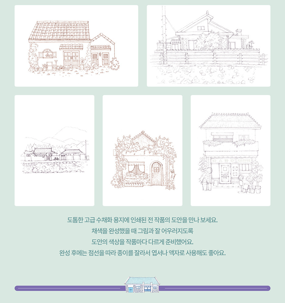 Each page is printed on high-quality watercolor paper, allowing you to paint freely without worrying about the paper texture or bleed-through. As you fill the pages with your favorite colors—whether it’s a bright blue sky or pastel-colored houses surrounded by blooming vines—you’ll find your heart gently filled with warmth and calm.