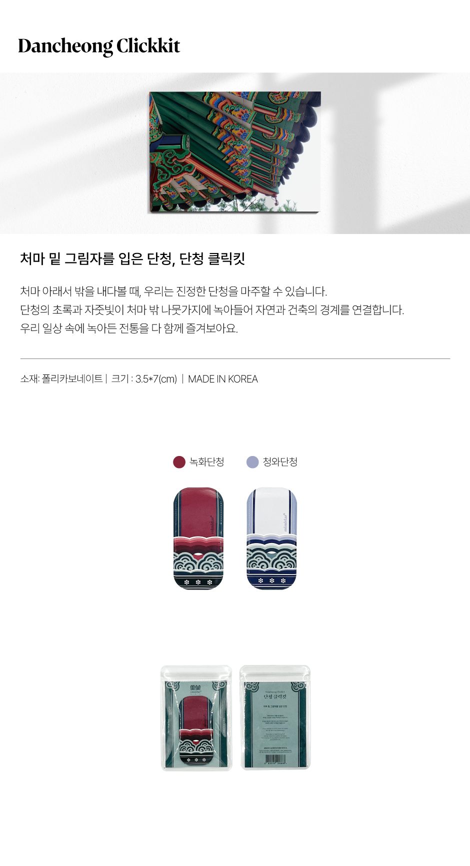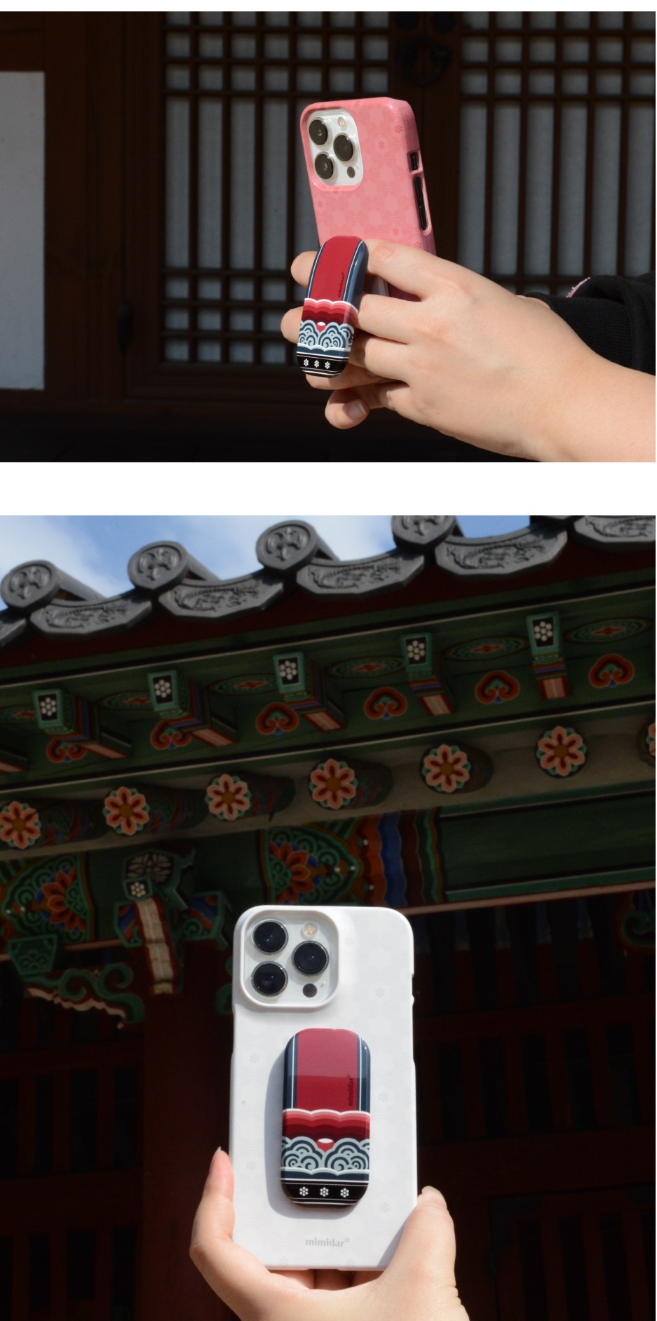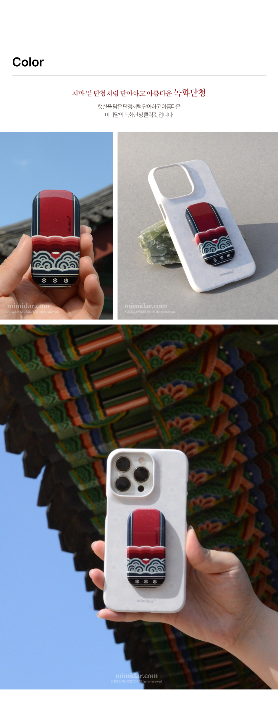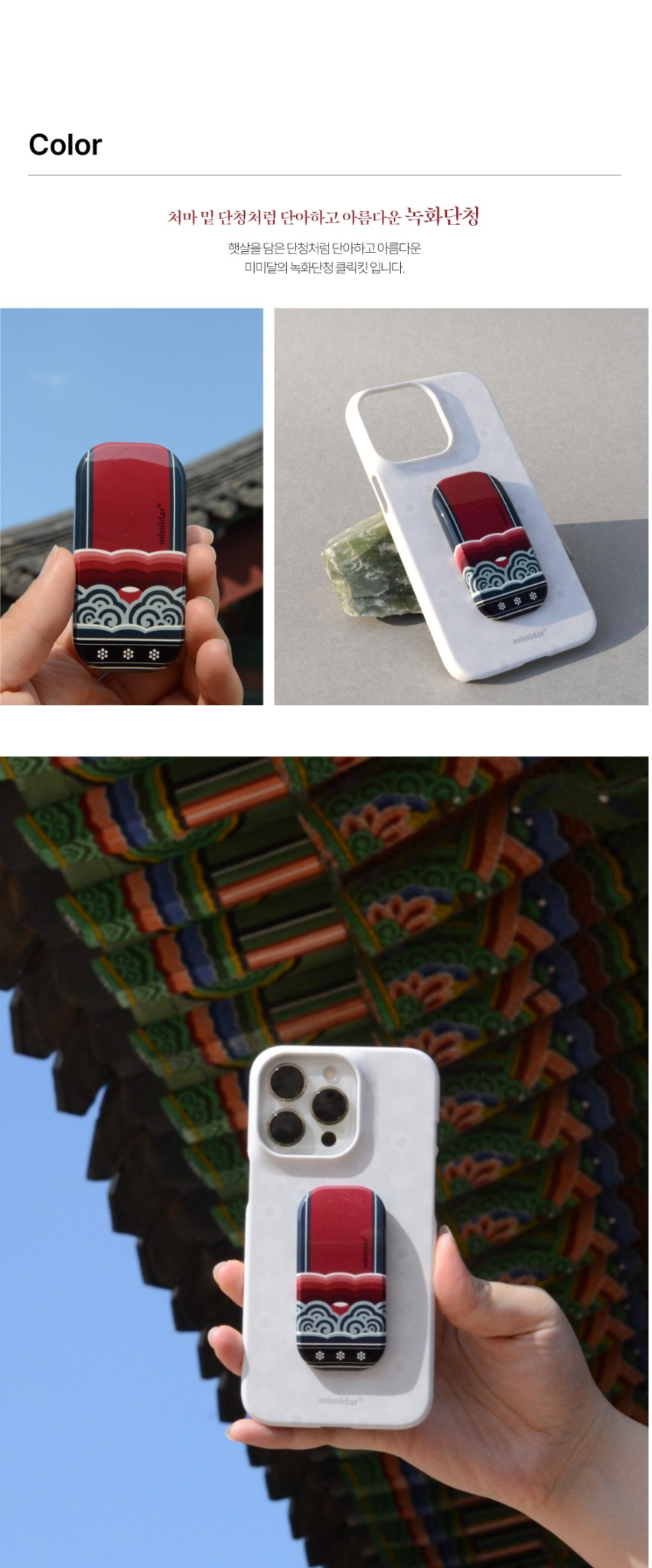 Bring the beauty of traditional Korean dancheong (decorative painting used in palace and temple architecture) into your daily life with the Dancheong Clickkit. Inspired by the colors and patterns beneath eaves, this phone grip and stand beautifully connects tradition and modern utility.