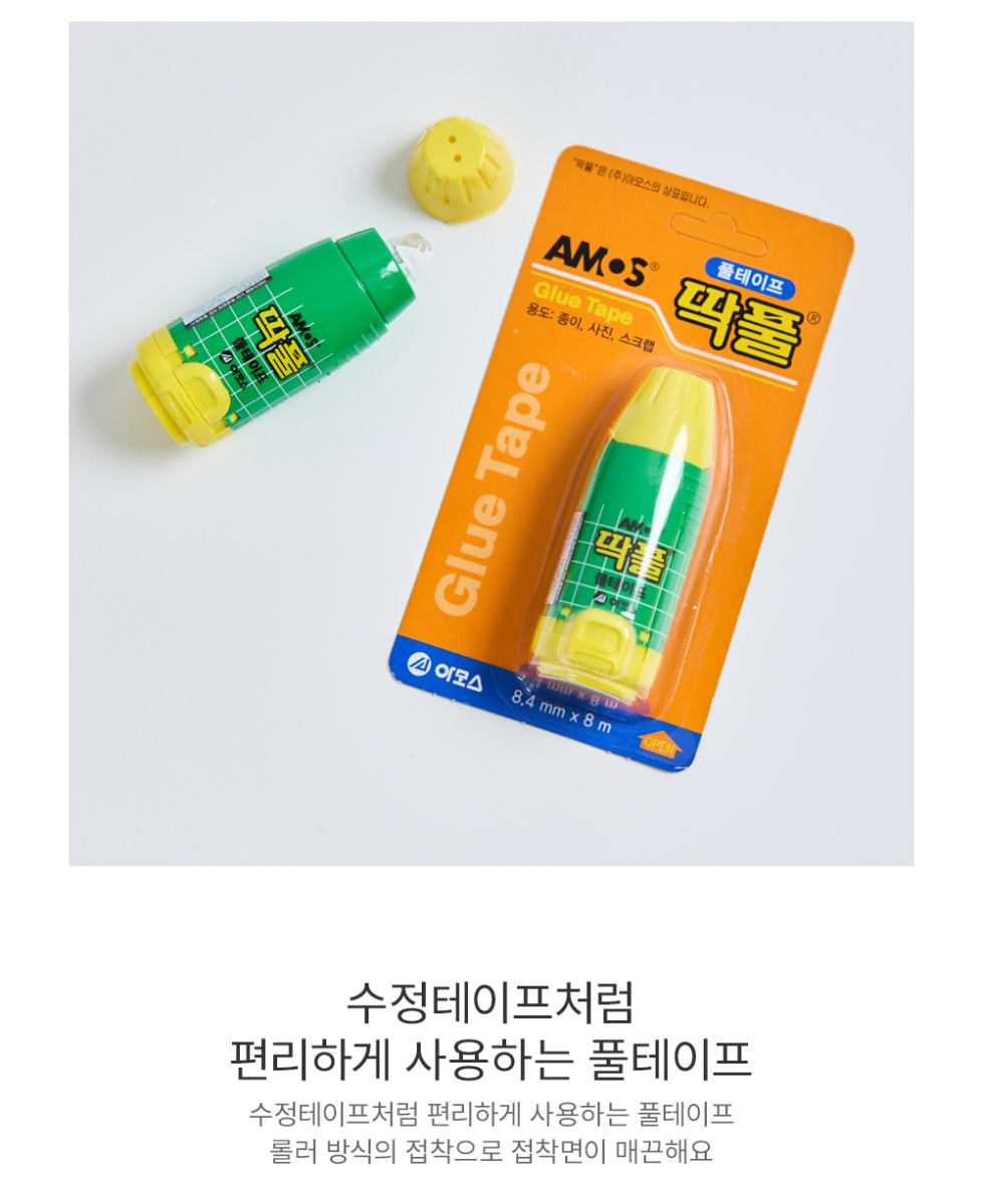 The AMOS Glue Tape offers a quick, clean, and convenient alternative to liquid glue. Designed like correction tape, this roller-type adhesive glides smoothly, making it ideal for scrapbooking, crafts, school projects, and everyday use without the mess of traditional glue.