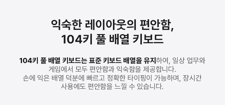 Full 104-Key Standard Layout: A familiar and comfortable design for both work and gaming.