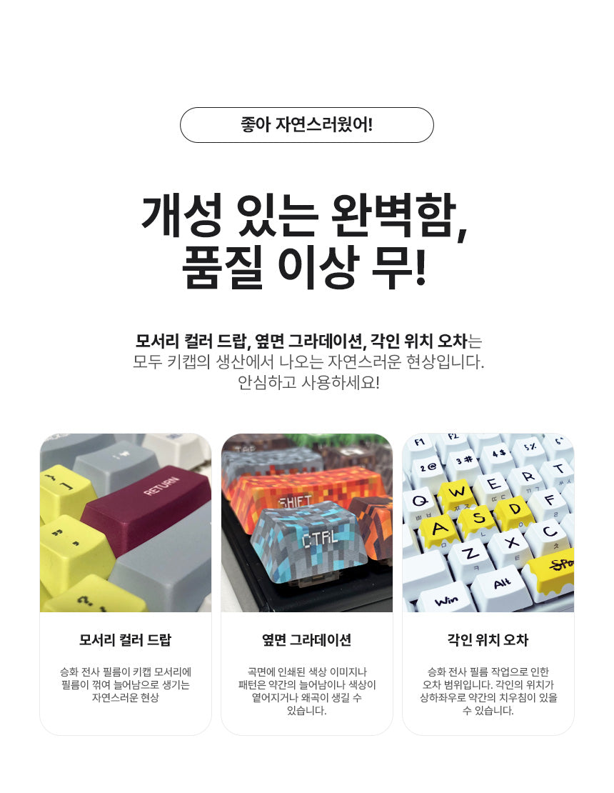 Unique Keycap Crafting: Variations in corner color, side gradients, and engraving positions are natural due to the manufacturing process. Each keyboard is uniquely crafted, adding to its authenticity.