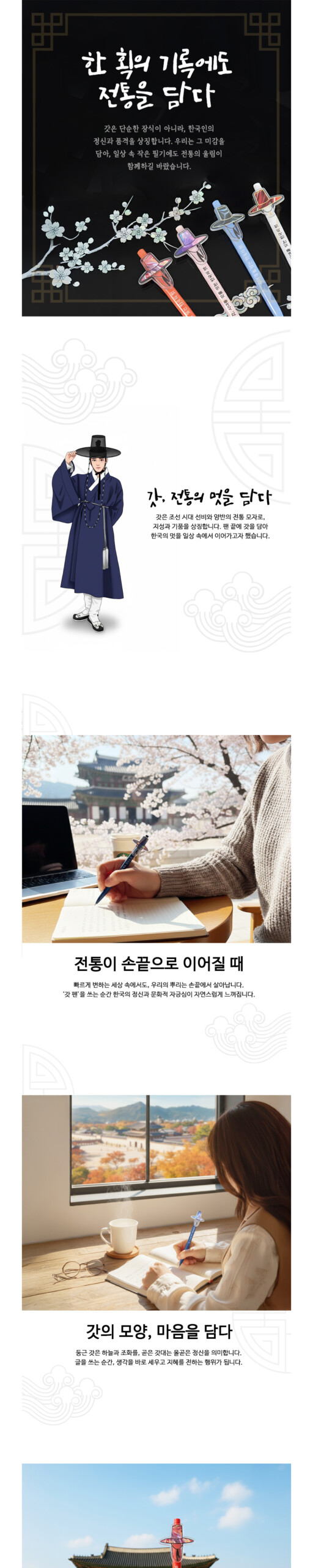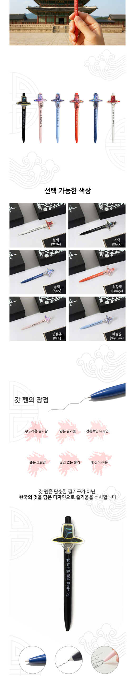 The gat, a traditional Korean hat worn by noble scholars during the Joseon Dynasty, symbolizes intellect, dignity, and harmony. Inspired by this timeless heritage, the Gat Pen blends tradition and modern design—bringing the spirit of Korea into your everyday writing.