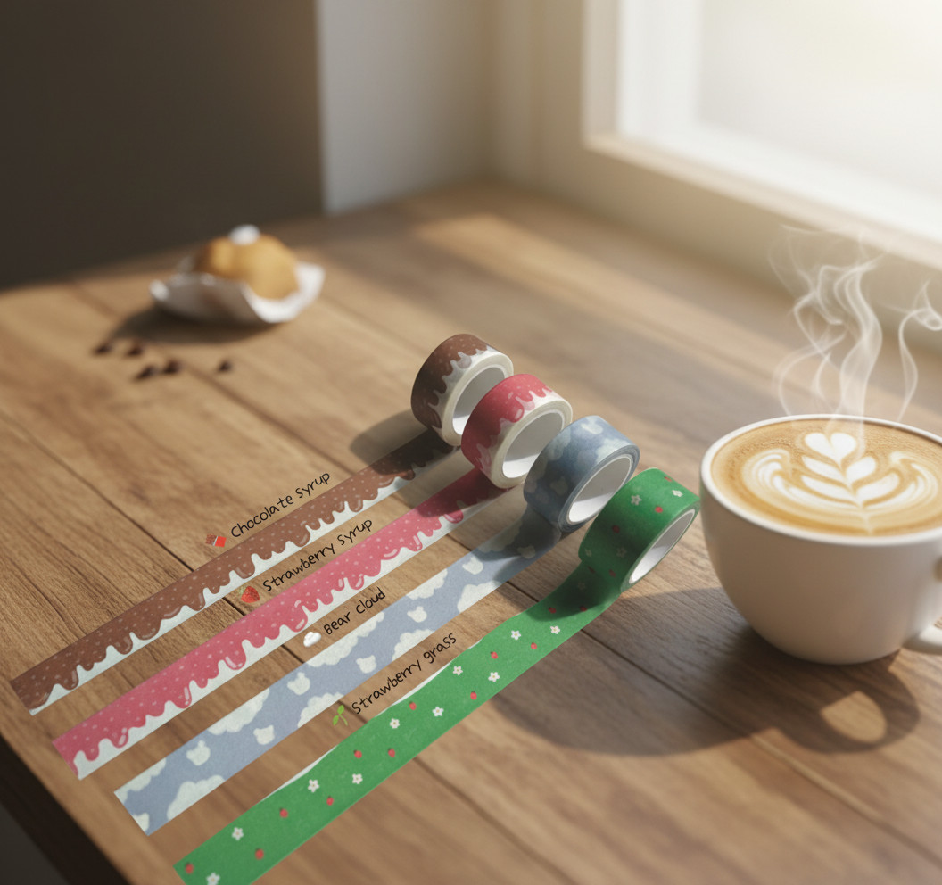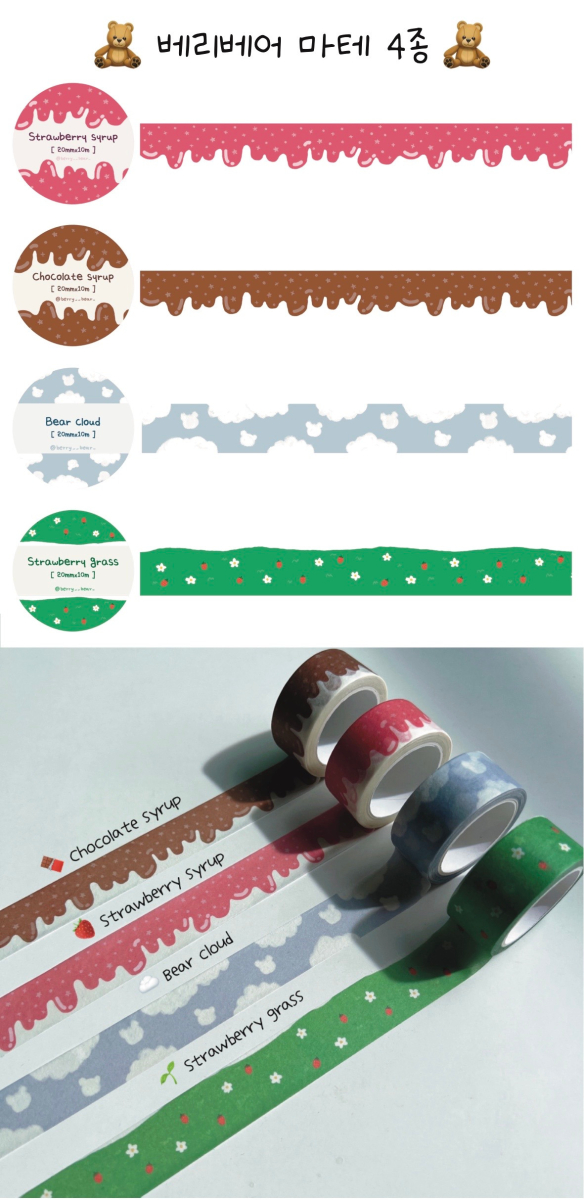 Bring sweetness to your crafts and journals with the BERRYBEAR Masking Tape collection. Inspired by the adorable bear who loves strawberries the most, these tapes add a playful touch to any project.