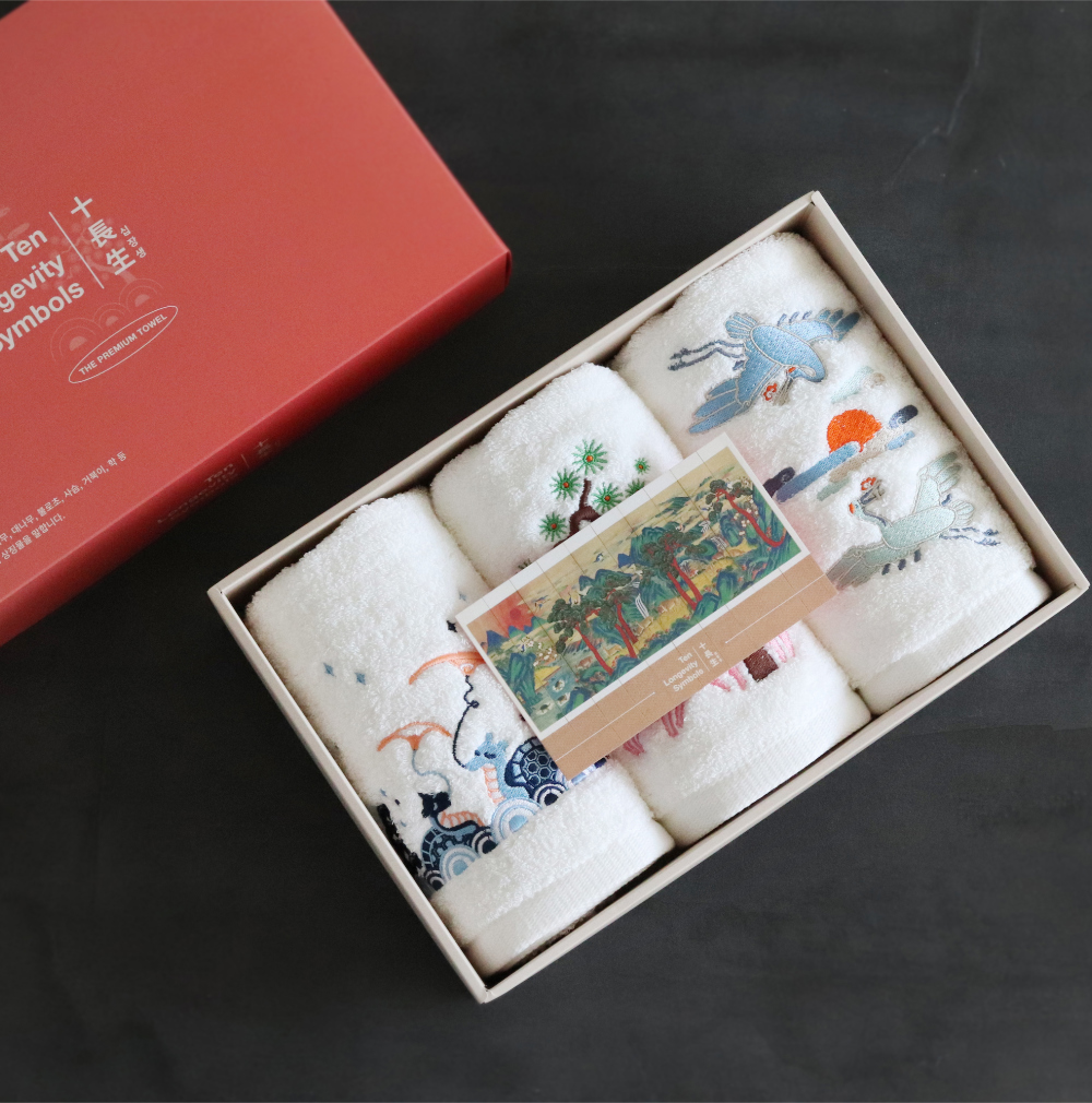 K-Heritage Sipjangsaeng Ten Longevity Symbols Towel 3-Piece Gift Set