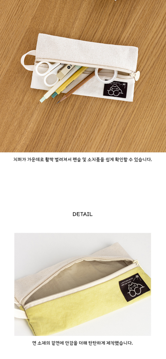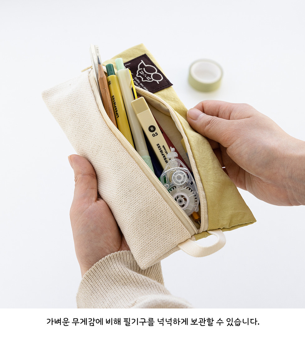 当初、ライブワークの「ここにある」コージーペンシルポーチを手に入れるときは、果たして本当に満足できるかどうか懐疑的でした。特別なデザインではなくごく普通のペンケースだろうと思ったからです。しかし、一度この愛らしいネコ型ジッパースライダーを目にすると、その見た目には思わず微笑んでしまいます。また、生地は天然素材が使われており、小さなダークドットを見ることができます。これは失敗でも欠陥でもなく、むしろ個性がありますね。手洗いしかできないとの注意書きですが、それもまた素敵。ただただ心地よい使用感やクオリティーについて感じていたので、「もっと早く購入すればよかった」と痛切に思っています。