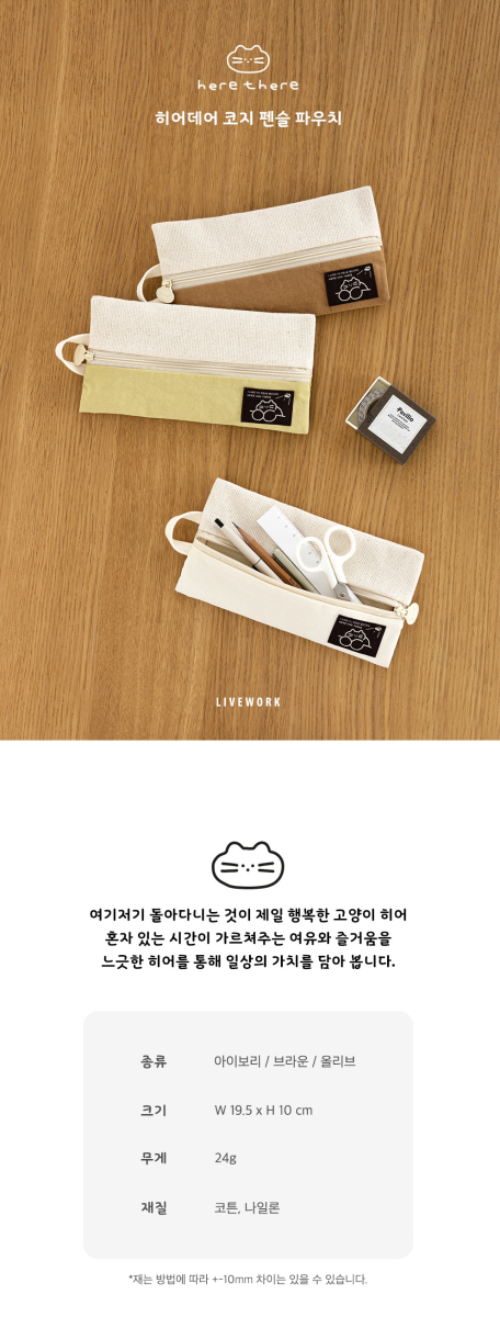 Hey! I recently got this cute pencil pouch by LIVEWORK and it’s totally adorable. The cotton fabric has that lovely raw vibe to it, which really speaks volumes about craftsmanship here in sunny Barcelona. 🏖️ It’s soft but tough enough for all my little bits n’ bobs—thankfully those dark spots from the weaving process are just part of its charm. Plus, can we talk about how fun the cat zipper is? That makes reaching for pens a delightful mini adventure each time! Just remember to handle it with care—it won’t fare well if things get too splashy or rugged around them sharp tools.