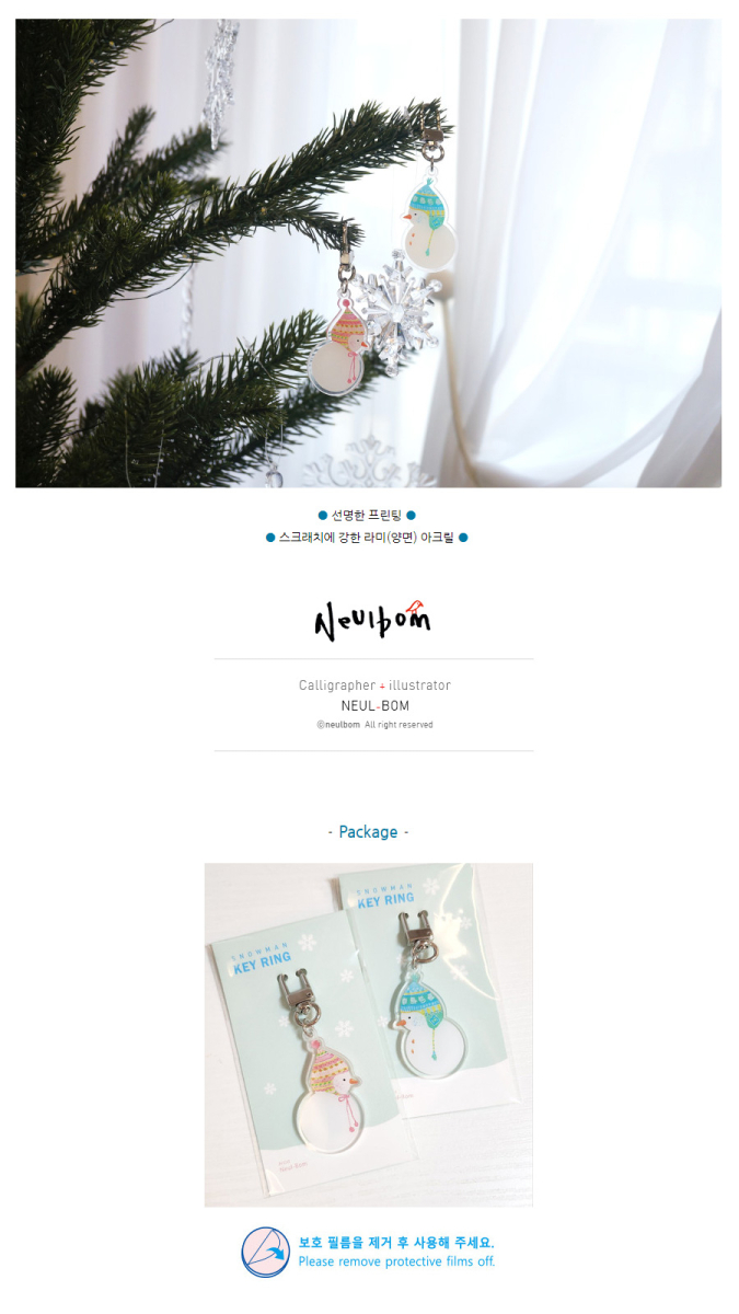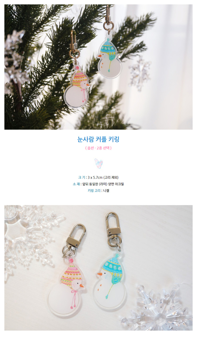 Add a touch of whimsy to your everyday essentials with the NEULBOM Snowman Couple Keyring! Crafted from double-sided laminated acrylic, this charming keyring features vibrant, scratch-resistant prints that won’t fade over time. Perfect for personalizing your bags or key collections, it’s both a delightful accessory and a functional way to keep your keys organized!