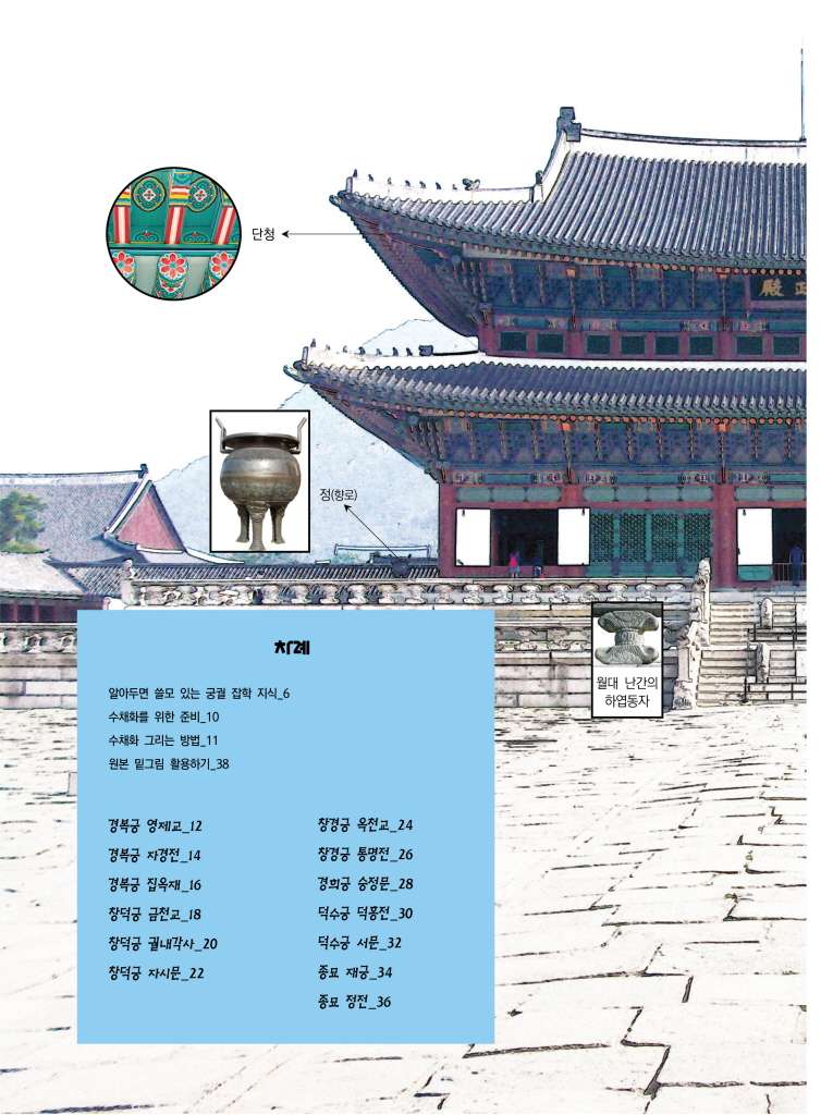 A watercolor coloring book that lets you freely paint the beauty of Korea’s royal palaces.