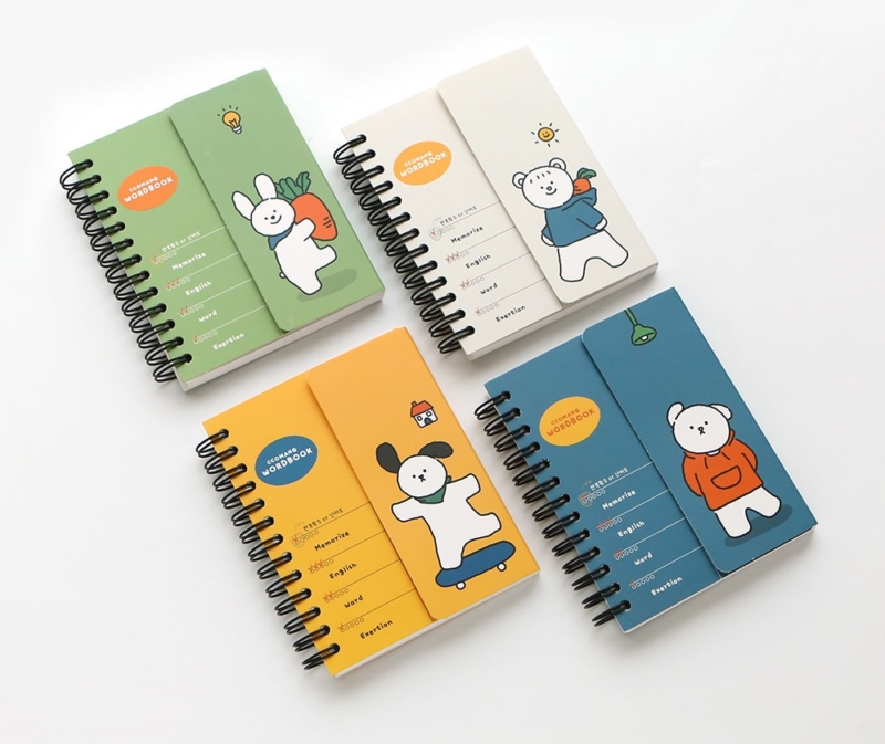 Cute vocabulary notebook set from Korean brand PINKFOOT. This set includes 4 colorful notebooks with cover flaps to help you memorize words more effectively. Each notebook has 80 sheets – perfect for studying languages, vocabulary building, or note-taking.