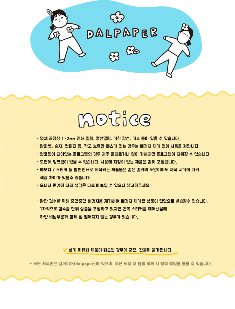 | Please note that there may be slight discrepancies such as 1-2mm of printing or cutting misalignment, or minor scratches due to the manufacturing process. |