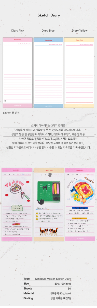 Type Options: Schedule Memo Pad / Sketch Diary