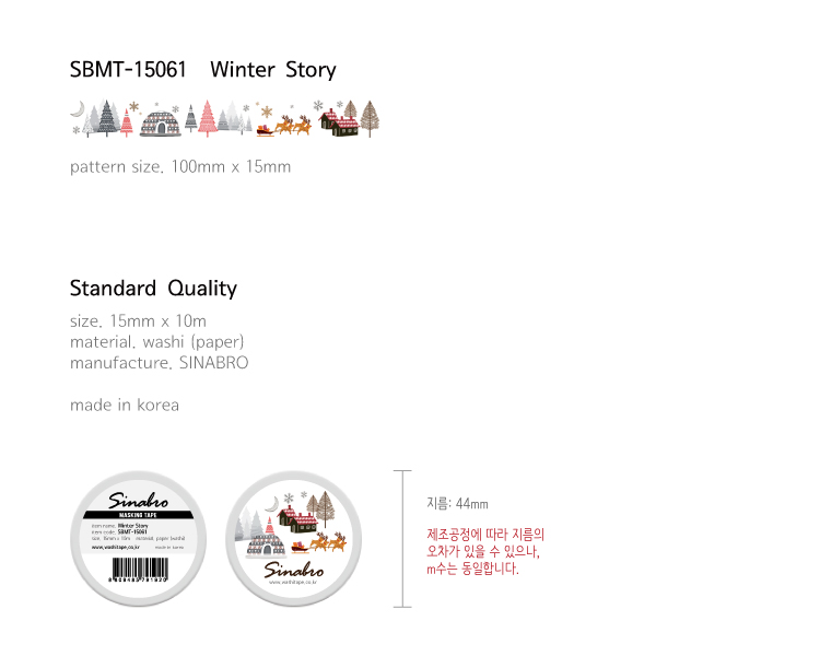 Unleash your creativity this winter with the SINABRO THE SUP Winter Story Washi Tape! Measuring 15 mm x 10 m, this beautifully designed washi tape features charming winter scenes that add a cozy touch to your crafts, scrapbooks, and gift wrapping. Made from high-quality washi paper, it’s easy to tear, reposition, and perfect for personalizing your projects with a seasonal flair!