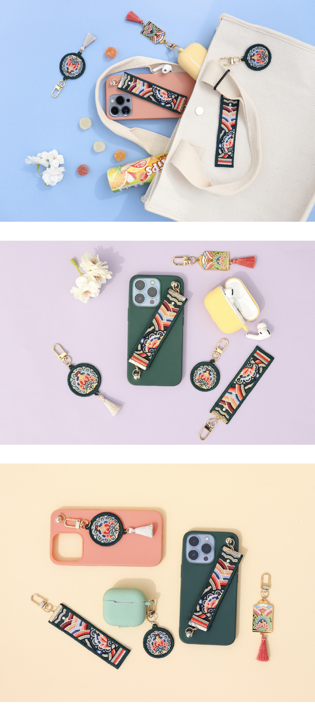 An exquisite embrace of craftsmanship! The embroidered keyring blends cultural finesse with vibrant colors, embodying nostalgia and tradition. Its delicate finish demands admiration.