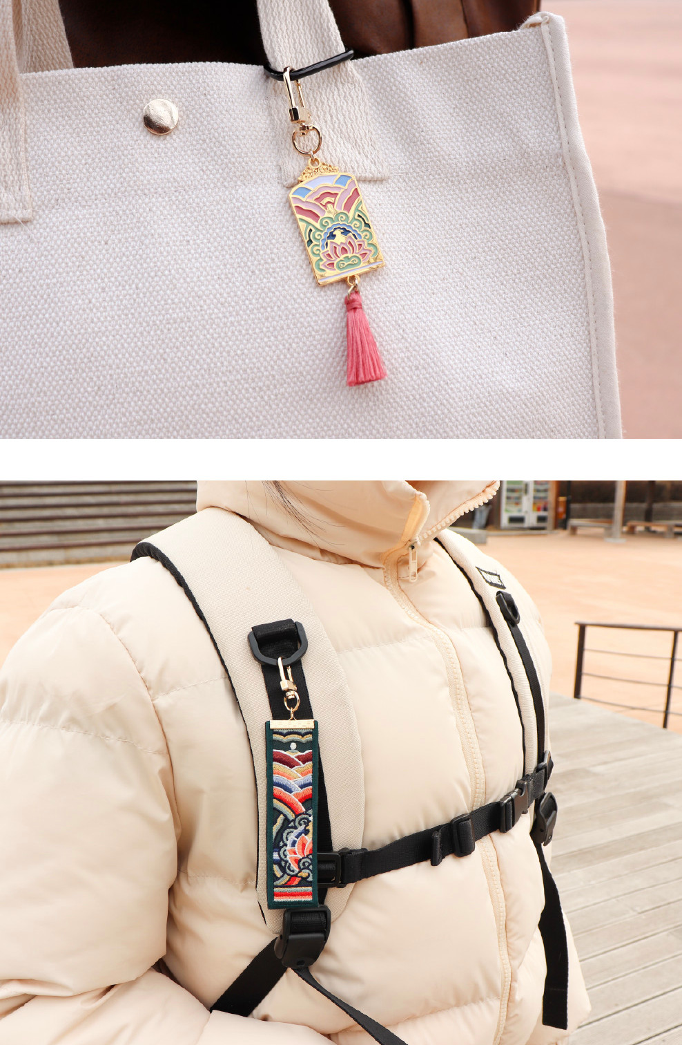 An exquisite piece reflecting craftsmanship, the lotus keyring seamlessly connects heritage and style. Its delicate embroidery exudes tradition in a contemporary form, perfect for cultural enthusiasts.