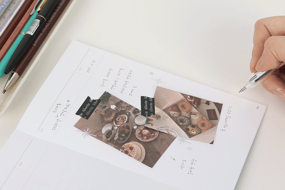 最初、このダイアリーに関しては疑問を持っていました。『なんで今さら日記?』と思いがちでした。しかし、開けてみると、その魅力にすっかり引き込まれてしまったのです! PVCジッパー袋からポストカードデコレーションまで、多機能性と個性溢れる使い方には驚きを隠せません。また、180°完全に広がる特長のおかげで、自分のアイディアや思考を書く作業も格段に楽になりました。木製不使用120g用紙の滑らかな触感にも癒されつつあります。本当に良質なプロダクトですね。この一冊で過去・現在そして未来との大切な接点になることを期待しています。