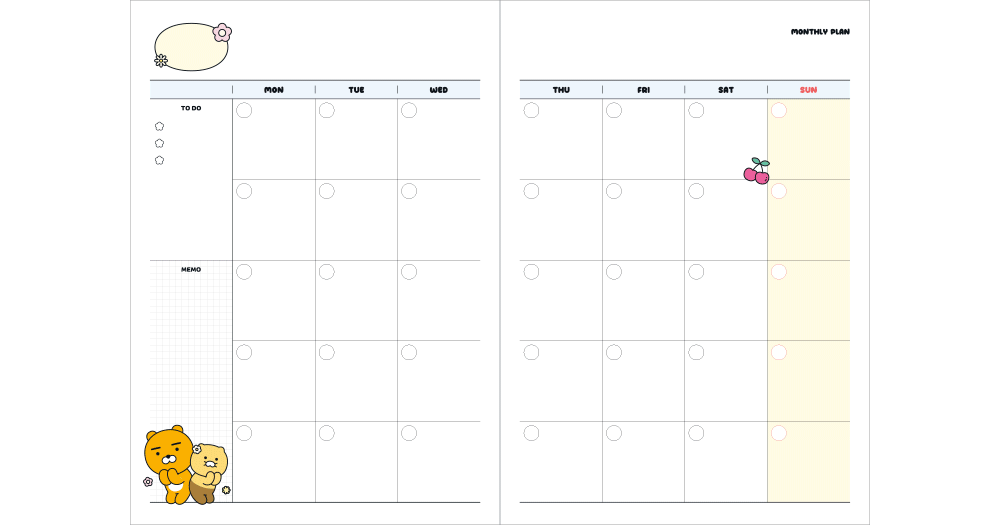 I’ve been using the KAKAO FRIENDS Say Cheese A5 Monthly Planner for a few months now and I absolutely adore it. The fun character covers featuring Choonsik, Ryan, and Apeach add a cheerful touch to my daily routine. What I appreciate most is its undated format—this means I can start anytime without wasting pages if I miss a month. Plus, the PVC cover feels sturdy and makes it easy to carry around without damage. The lay-flat binding allows me to write comfortably on any page. Overall, it’s made planning less of a chore and much more enjoyable.